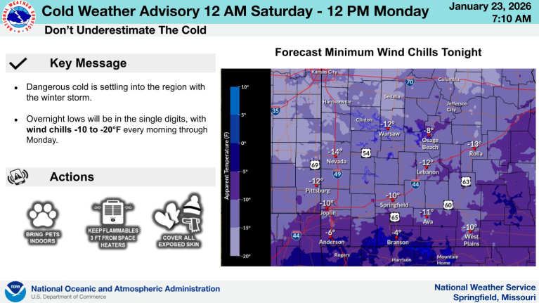 An extreme cold warning is also going into effect through the weekend, which could keep road conditions from improving, and may result in additional closings and cancellations from businesses, non-profits and schools.