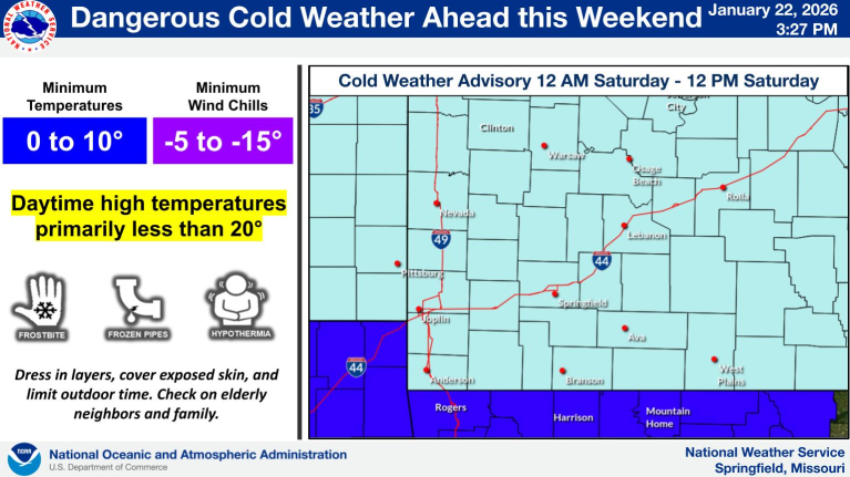 * WHAT…Heavy snow expected. Total snow accumulations between 6 and 12 inches. Greatest amounts are expected along and south of Interstate 44 and the lowest amounts are expected across central Missouri. Areas near the Missouri and Arkansas border may see sleet mix with snow at times.